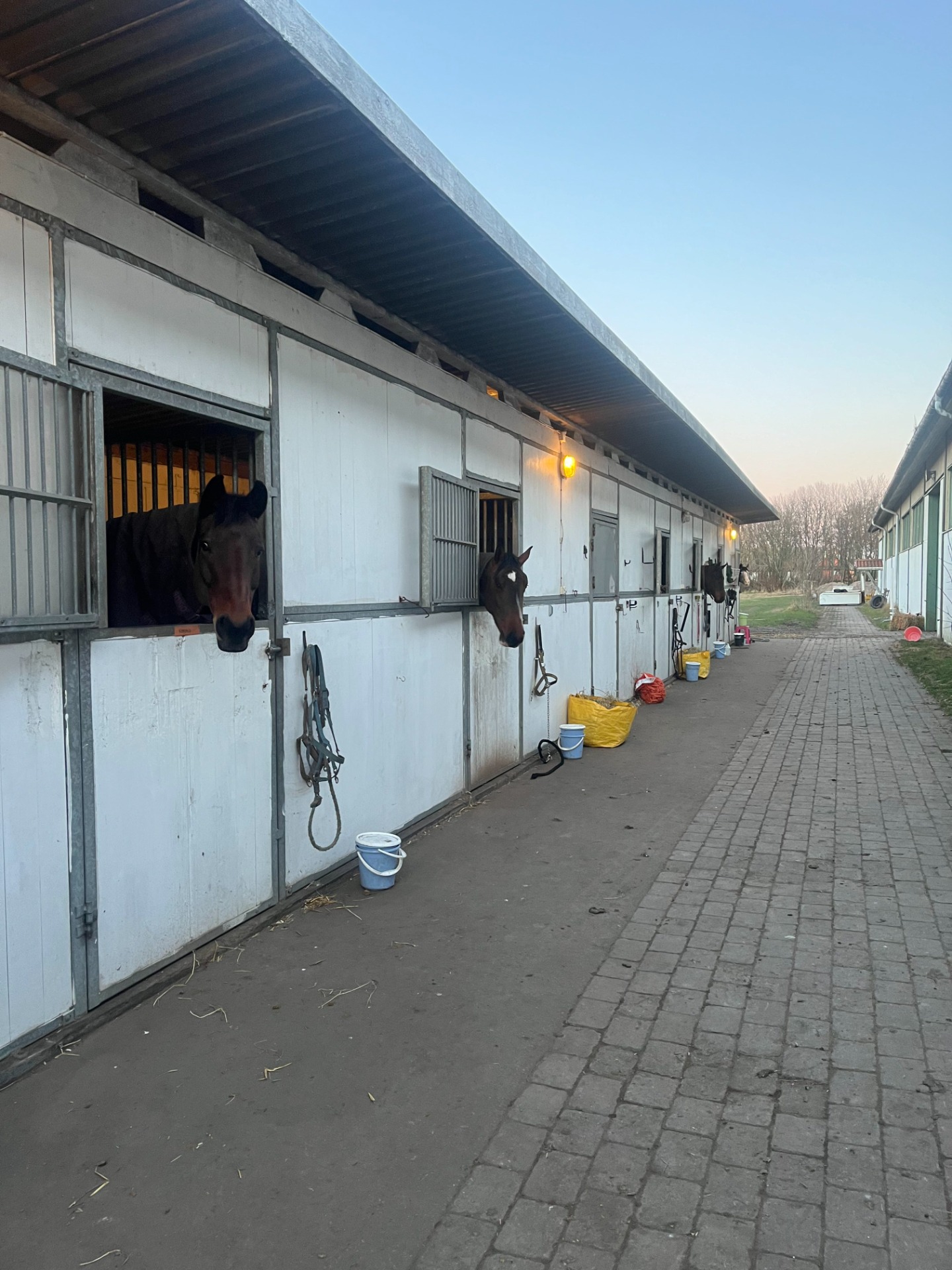 Vi är ett ambitiöst och sammansvetsat stallgäng som tränar och tävlar tillsammans och lägger stor vikt vid god stämning och fungerande system. Hästarna går i stora hagar, gärna tillsammans, med individanpassade lösningar vid behov. Fodringar samt in- och utsläpp sköts gemensamt men inte på rullande schema. Ingen fullservice, men möjlighet till hjälp med mockning finns.